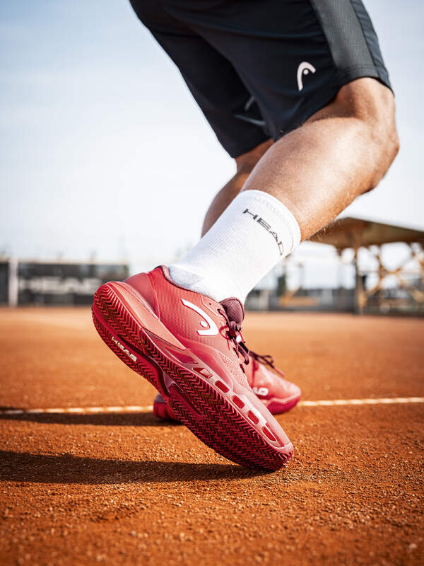 Die durchgehende Fischgräten-Außensohle ist speziell für Sandplätze entwickelt und ermöglicht optimale Traktion, kontrolliertes Rutschen und konstante Performance bei jedem Ballwechsel.